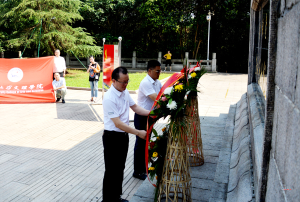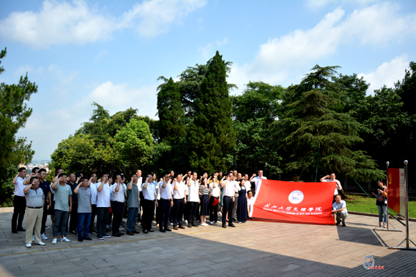 在鄂豫边区革命烈士陵园,全体党员同志瞻仰了革命英雄纪念碑,鞠躬默哀并敬献花篮,经理王文凯、党委书记朱继平整理挽联,党委副书记孙细望带领大家面对鲜红的党旗庄严宣誓。