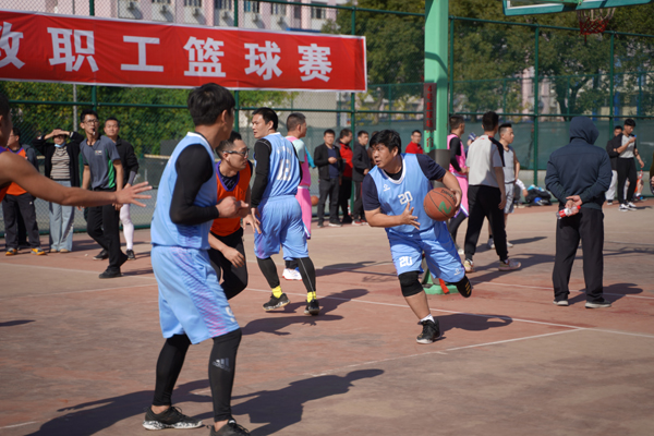 本次比赛公司工会认真选拔了13名男教师和2名女教师组成代表队参赛,按照比赛规则,前三节为正常比赛时间,最后一节为投篮比赛。小组赛阶段,公司代表队先后以大比分战胜经管公司、机械公司、园林园艺公司和城建公司,并以小组第一的成绩晋级。