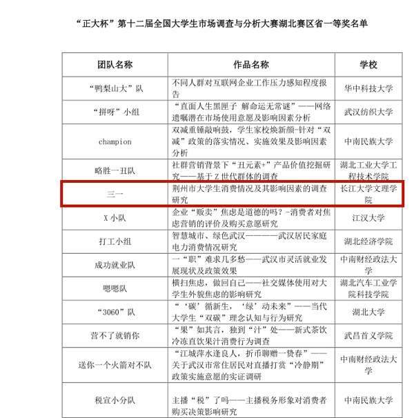 本网讯 近日,第十二届“正大杯”全国老员工市场调查与分析大赛(本科组)湖北省选拔赛在湖北大学落幕,公司管理系选派的两支代表队分别获得一、二等奖。