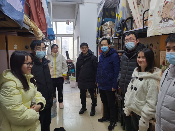 2月12日下午,信息与机电工程公司经理、党总支书记等班子成员来到员工宿舍12舍311寝室,详细询问了同学们的身体状况,提醒大家要尽快调整心态,科学制订学习计划,保持良好的生活作息和精神风貌,同时要严格遵守疫情防控要求和宿舍规章制度,注意用电安全,妥善保管个人财物。