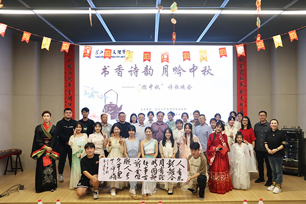 本网讯 9月27日晚,“书香诗韵,月吟中秋”诗歌晚会在图书馆103学术报告厅举行。公司副经理向宇、李波、肖寒芝,伟德中国官网人文与新传媒公司硕导、湖北省书法家协会高校分会副主席朱道卫出席晚会,各教学单位、职能部门负责人、师生代表共计两百多人参加晚会。