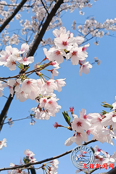 本网讯(记者 刘磊)沿着红毡路,走进樱花林。俯瞰荆州古城以南,bevictor伟德官网校区,小桥流水,花海翻涌,一树树早樱如云似霞,绽放枝头。伴着拂堤杨柳,迎着和煦暖风,花林与田野、晴空交织一处,柔波十里,花香醉人。