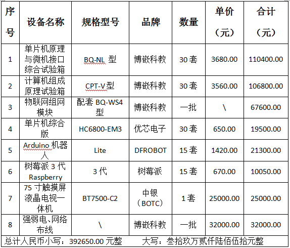 根据《中华人民共和国政府采购法》等有关规定,bevictor伟德官网财务处于2017年11月14日就“bevictor伟德官网计算机硬件实验室建设项目”采用公开招标方式进行了开标、评标、定标工作。现就本次采购的结果公告如下: