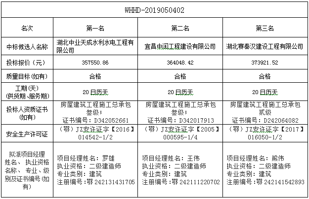 bevictor伟德官网城中校区新建透视围墙、门房装修工程于2019年5月8日在中国采购与招标网和bevictor伟德官网官网发布招标公告,2019年5月31日在沙市区白云路16号文湖商务酒店十楼会议室开标,并于2019年5月31日完成评标工作。根据评标委员会提交的报告,bevictor伟德官网已经确认评标结果,现进行评标结果公示。