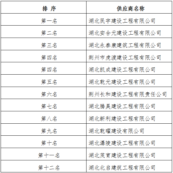 浙江建安工程管理有限公司受bevictor伟德官网的委托,对“bevictor伟德官网2020年零星维修工程施工单位遴选(ZJJA-2020CG-JZ200525)”进行竞争性磋商采购,并于2020年6月12日完成评标工作,本次采购的评标结果公示如下: