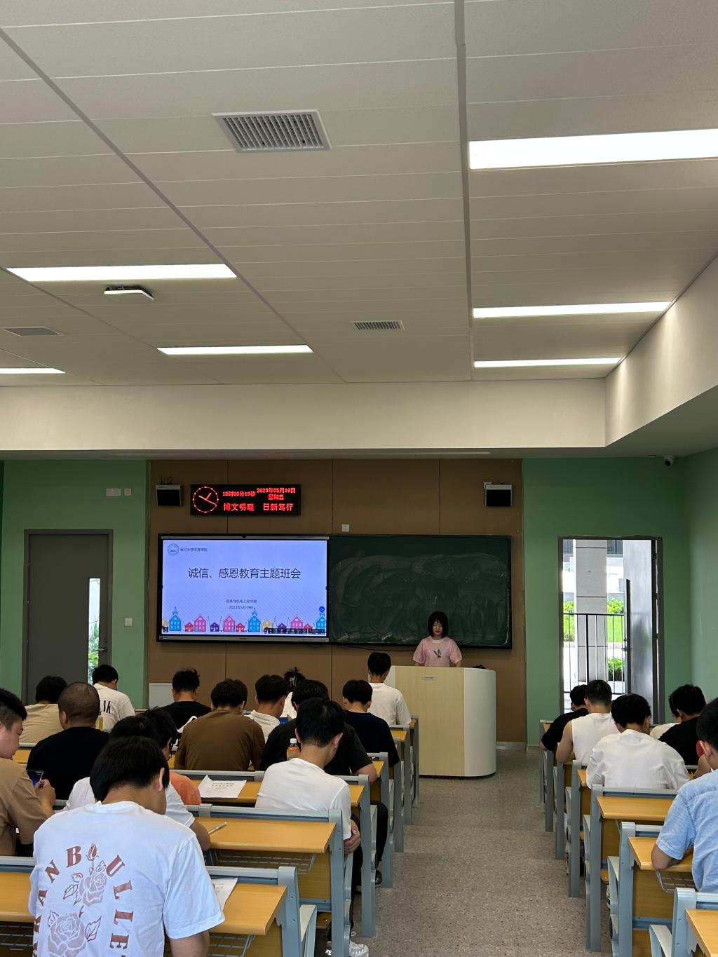 班会开始,主持人倡导同学们树立诚信的意识,在生活中坚持“诚信为本”,养成讲诚信的好习惯,并在后续的考试中杜绝一切考试作弊行为。随后,主持人围绕“国家资助政策”、“感恩的意义”、“感恩的行动”三个方面,并通过观看“励志、感恩、诚信”主题影片,教育引导同学们要知恩于心、感恩于行,学会感恩当下,珍惜来之不易的生活。最后,主持人组织同学们展开讨论生活中让我们心存感激的事件,号召大家把感恩之情化为自强不息、顽强拼搏的励志精神,把诚信教育融入生活,全面提升老员工的人文素养。