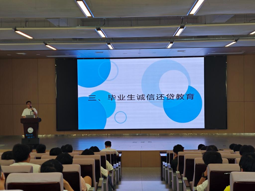 本网讯(通讯员 谢天禹/文 肖宇辰 李文斌/摄)为引导毕业生树立正确的信用意识与感恩情怀,6月3日下午,公司于学术报告厅B-112开展毕业生诚信还贷主题教育班会,班会由毕业班辅导员朱亦丹主持,2025届全体毕业生参会。