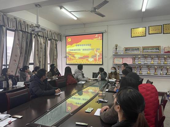 首先在支部书记的带领下,所有老师重温入党誓词,然后政治学习阶段,由教工党支部书记呙明辉带领大家集体学习了习近平:坚持用马克思主义及其中国化创新理论武装全党、习近平致信祝贺首届中国网络文明大会召开强调广泛汇聚向上向善力量共建网上美好精神家园、中国共产党第十九届中央委员会第六次全体会议公报、中共中央关于党的百年奋斗重大成就和历史经验的决议、习近平:关于《中共中央关于党的百年奋斗重大成就和历史经验的决议》的说明等11项内容。