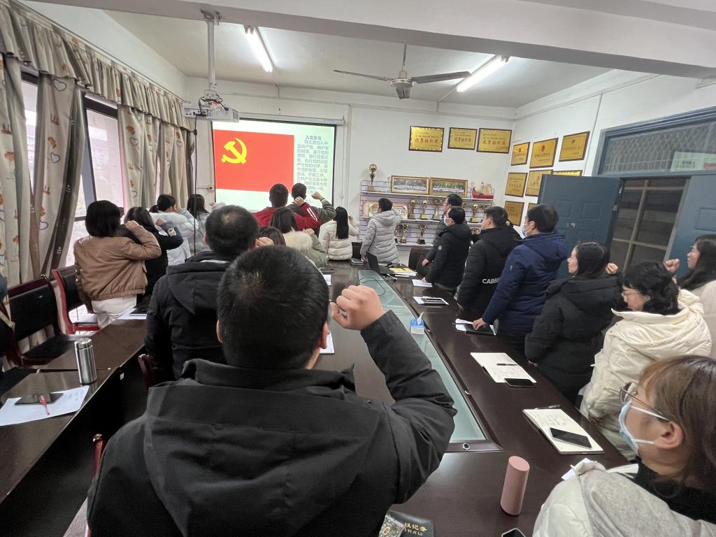 在支部主题党日活动中,全体党员重温入党誓词、交纳党费、集体诵读《中国共产党章程》,学习《习近平谈治国理政》第四卷第十一至第十五部分、伟德中国官网关于开展违规吃喝问题专项整治的工作方案及公司开展违规吃喝问题专项整治工作动员会的精神、2023年全国教育工作会议精神等内容。