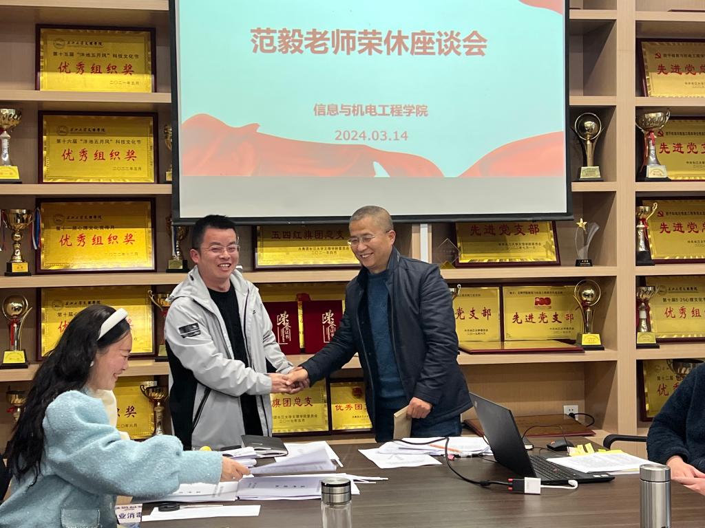 本网讯 3月14日下午,范毅老师荣休仪式暨座谈会在图书馆510会议室举行。公司工会主席刘磊、公司全体领导班子成员出席活动。