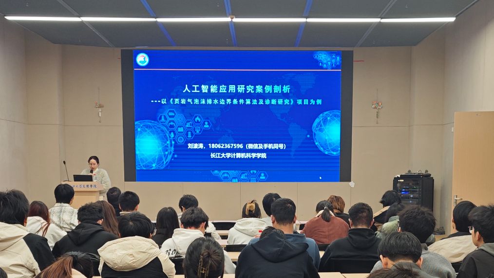 刘波涛以一个实际的科研项目为例,深入浅出地阐述了人工智能技术在解决实际生产问题中的应用。他详细介绍了人工智能的应用研究的基本思路、基本步骤和基本方法,为在场师生带来了一场精彩纷呈的学术盛宴。