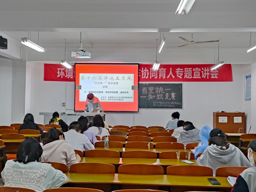 经过前期宣传,共有两百余名同学参加初赛。经法系团总支组织参赛者在初赛前进行培训,帮助参赛者更好的了解比赛赛制。本次比赛题目内容涉及广泛,包括党史、军事、团学、学科知识等相关内容,初赛采用线下答题形式,共计100题,参赛者答题时间为1个小时。本次比赛按照防疫要求,所有工作人员与参赛者都佩戴口罩、检查健康码,参赛者间隔落座。