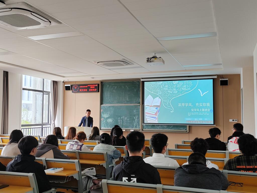 本网讯(见习记者 田琼钕)贯彻落实公司2023年教风、学风、师德师风建设月活动,促进我系学风建设的深入开展,营造良好的学习环境和学习氛围,2023年5月11日,经济与法学系以班级为单位召开“浓厚学风、充实你我”主题班会,本次班会由各班班长主持,辅导员参加各班班会。