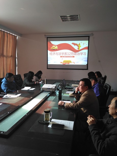 12月13日下午13:30,经法系全体教职工在系部会议室开展12月政治学习和支部主题党日活动。会议由党总支书记李成军主持。
