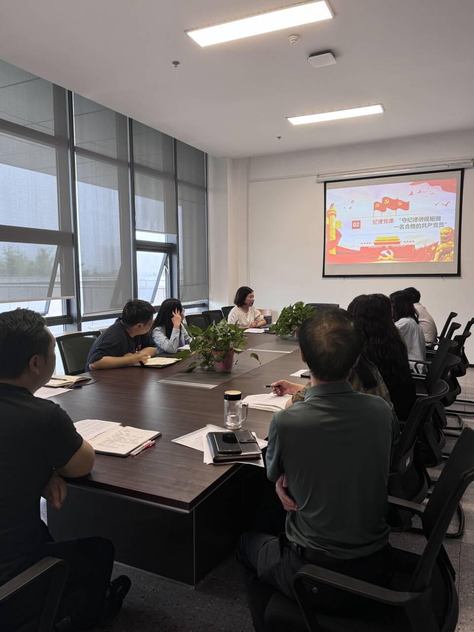 随后,全体党员教师开展支部主题党日活动。全体党员重温入党誓词,并按时交纳本月党费。陈莉讲授题为《守纪律讲规矩做一名合格的共产党员》的纪律党课。大家集体诵读学习《中国共产党纪律处分条例》(第8—11章、附则);学习内容包括:习近平总书记关于党的纪律建设的重要论述;习近平在山东考察时强调,以进一步全面深化改革为动力,奋力谱写中国式现代化山东篇章;习近平总书记对档案工作作出重要指示批示;全省领导干部警示教育会举行;公司召开领导干部警示教育会;《湖北省科学技术进步条例》。
