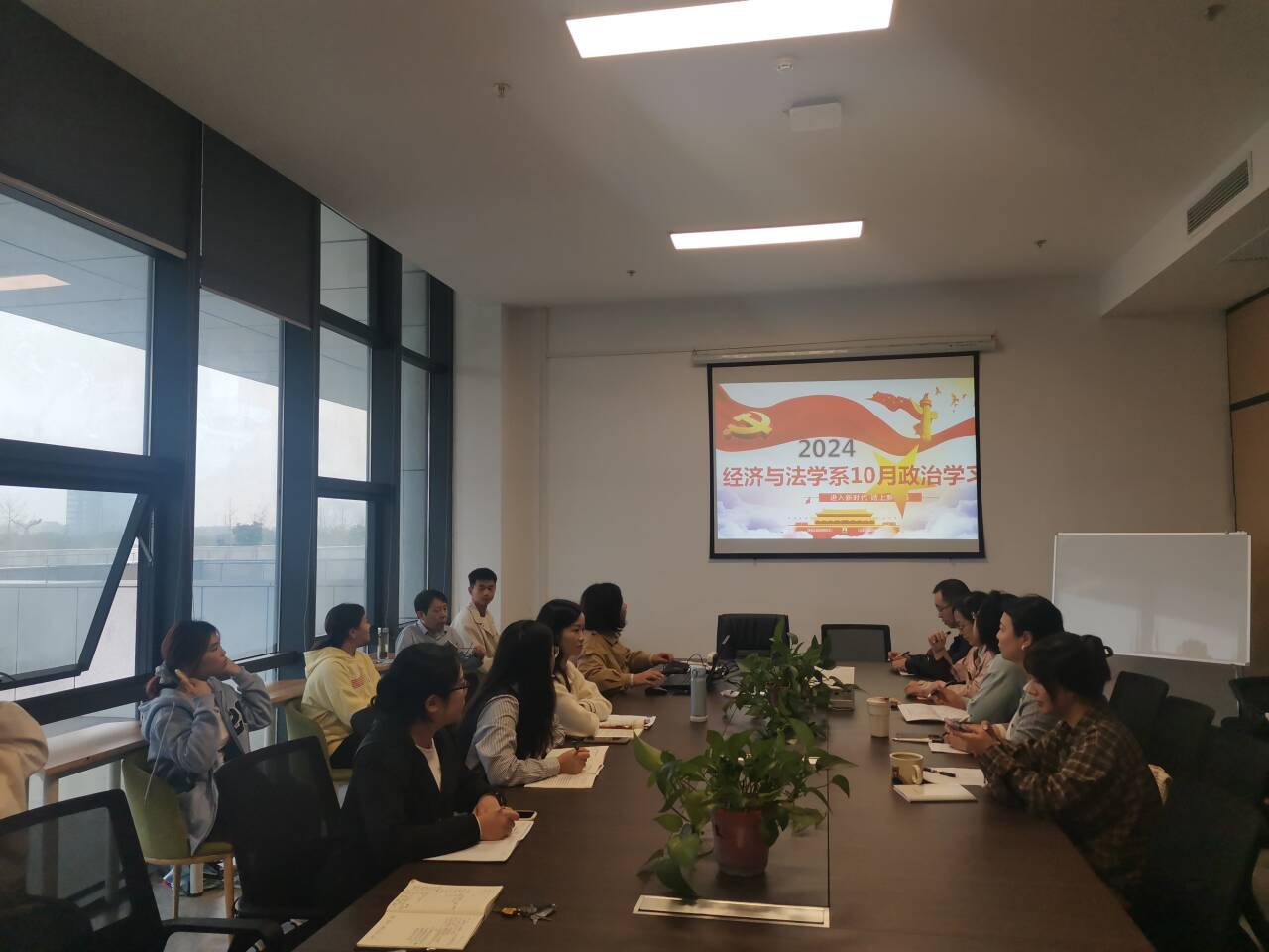 10月17日下午15:00,经法系教工支部在系会议室开展10月政治学习和支部主题党日活动。会议由教工党支部书记陈莉主持。