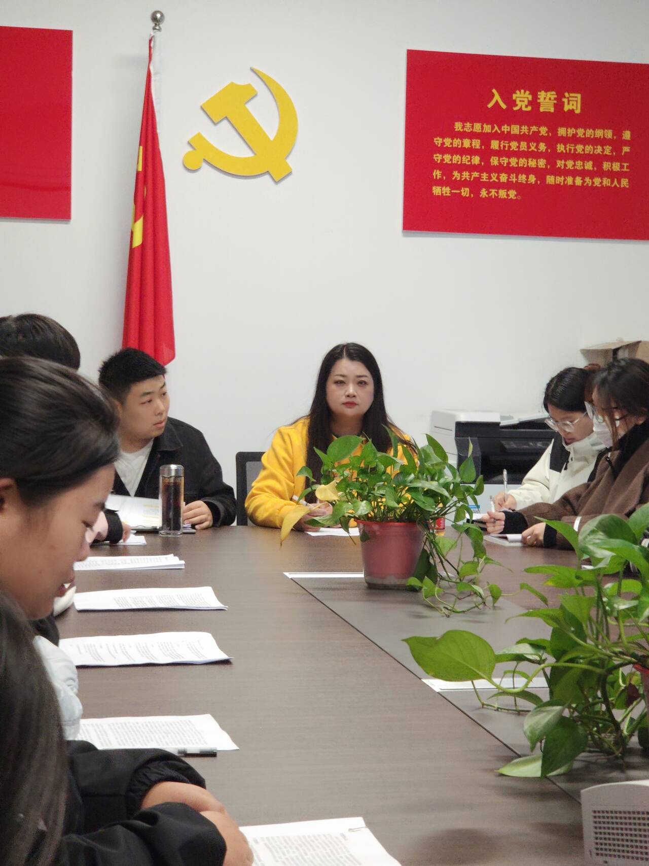 会议从庄严地重温入党誓词拉开序幕。全体党员在支部书记杨杉杉同志的带领下重温入党誓词。随后开展了交纳党费活动。在支部主题党日活动中,全体党员集体诵读《中国共产党章程》总纲等内容。通过诵读《中国共产党章程》(第二章),全体党员进一步强化了思想、工作作风和使命担当。