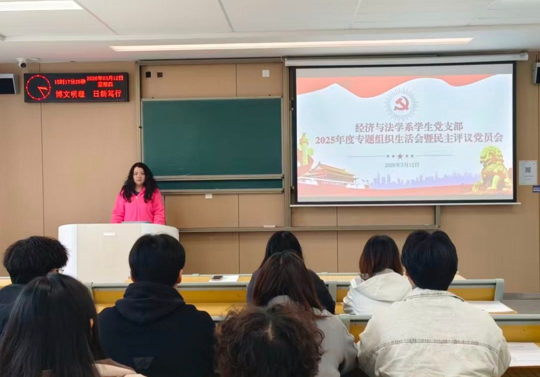 经法系员工党支部于2026年3月12日下午在教学楼C120教室召开了2025年度组织生活会暨民主评议党员会议。会议由员工党支部书记杨杉杉主持,全体员工党员参加。