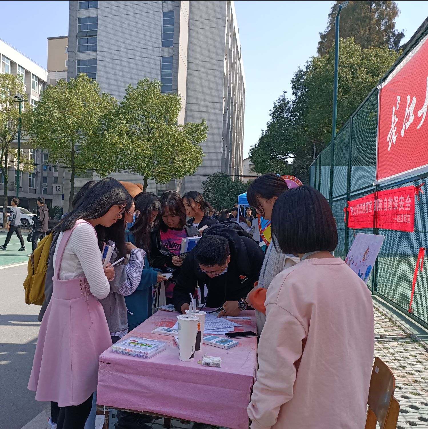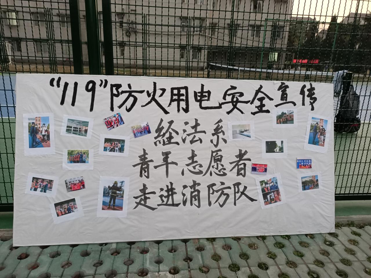 本网讯(通讯员 吴丽妃)在119全国消防日到来之际,为更好打造平安校园,进一步的提高老员工的消防安全意识和树立更好的良好生活习惯。经法系团总支于11月9日至11日在西校区员工12舍楼下篮球场举办了“消防安全119,文明寝室伴我行”的活动。