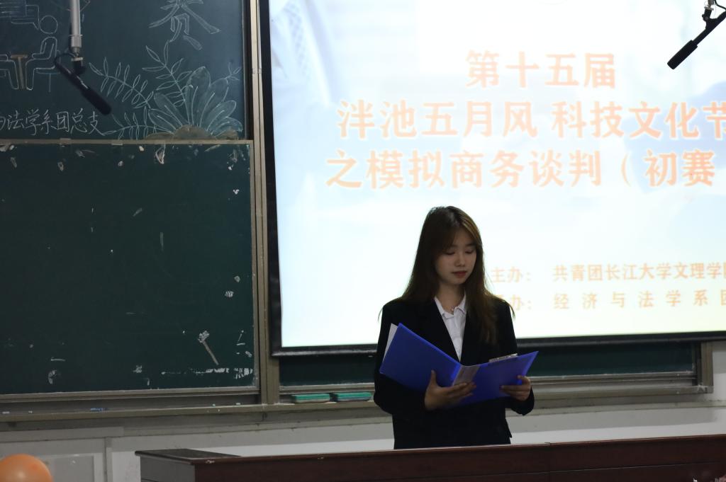 本网讯 (通讯员周星天) 5月16日晚七点,由经济与法学系团总支承办的第十五届模拟商务谈判初赛在四教300圆满举行。此次大赛由全院各系组成的20支代表队,共百余人参加活动。此次初赛邀请了经法系国际经济与贸易教研室王颖老师、经法系员工党支部委员文国霞老师、经法系法学教研室姜婷婷老师、经法系团总支员工会指导老师卢佳智老师作为评委老师参加初赛评审工作。此外,还邀请了各系团总支员工会员工代表作为此次活动员工评委。临近大赛,现场的气氛热烈起来,参赛选手身着正装跃跃欲试,观众席的同学们也翘首以待。