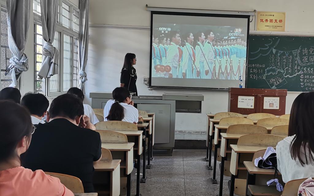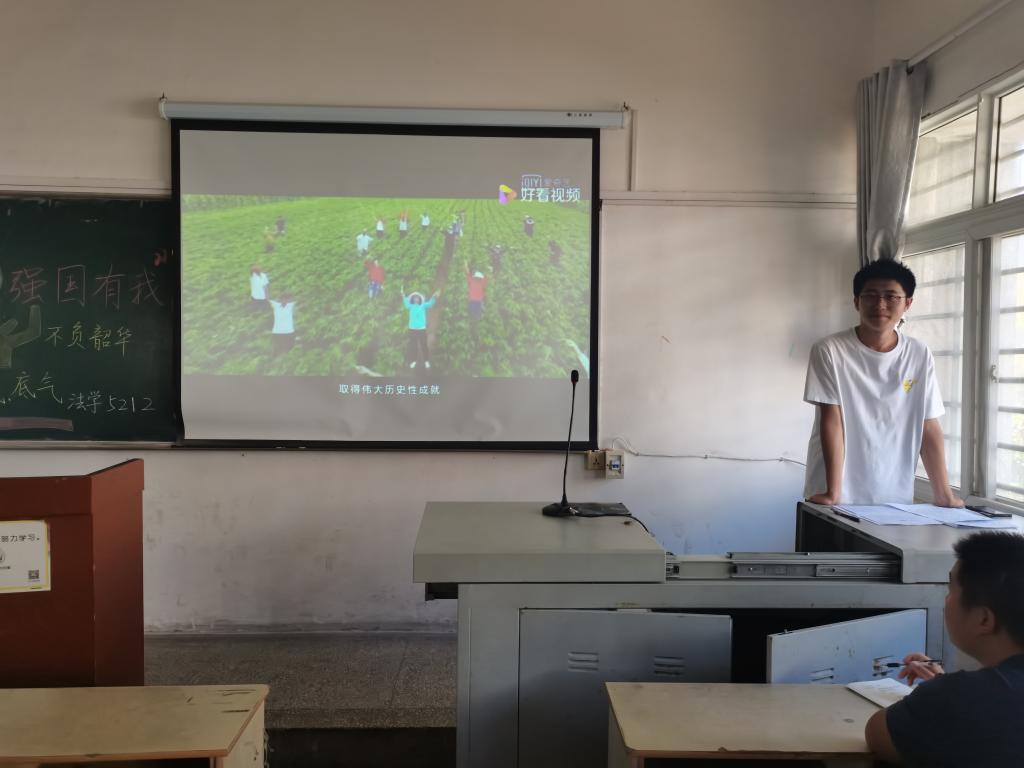 当下的青年不仅是新时代的见证者,更是全程参与的建设者,注定是奋斗的一代、奉献的一代、大有作为的一代。国贸5191、法学5191通过开场游戏来活跃气氛并借此引出主题,通过对于“强国有我”的深刻讲解,生动形象的阐明了强国与青年之间的辩证关系。金融5212班在深扣主题的基础上通过与同学们深入交流互动,在深入讨论中对习近平总书记“七一”重要讲话精神进行了深刻的学习与领悟,抛出“党旗党徽构成及意义”等问题引出同学们主动学习的积极性。