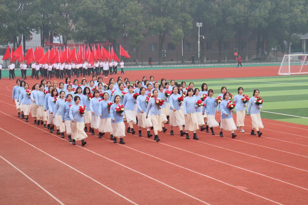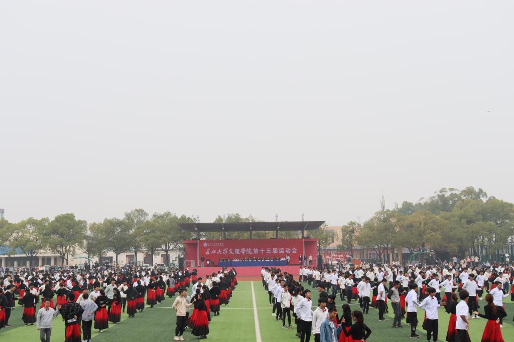 千名同学组成的华尔兹舞队,以青春活泼的舞步拉开了运动会的序幕。伴随着激昂的《运动员进行曲》,15个院、系部代表队高喊着嘹亮的口号,依次入场。大家的面容神采奕奕、步伐整齐划一,以饱满的精神面貌展现了文理师生的气质和风采。