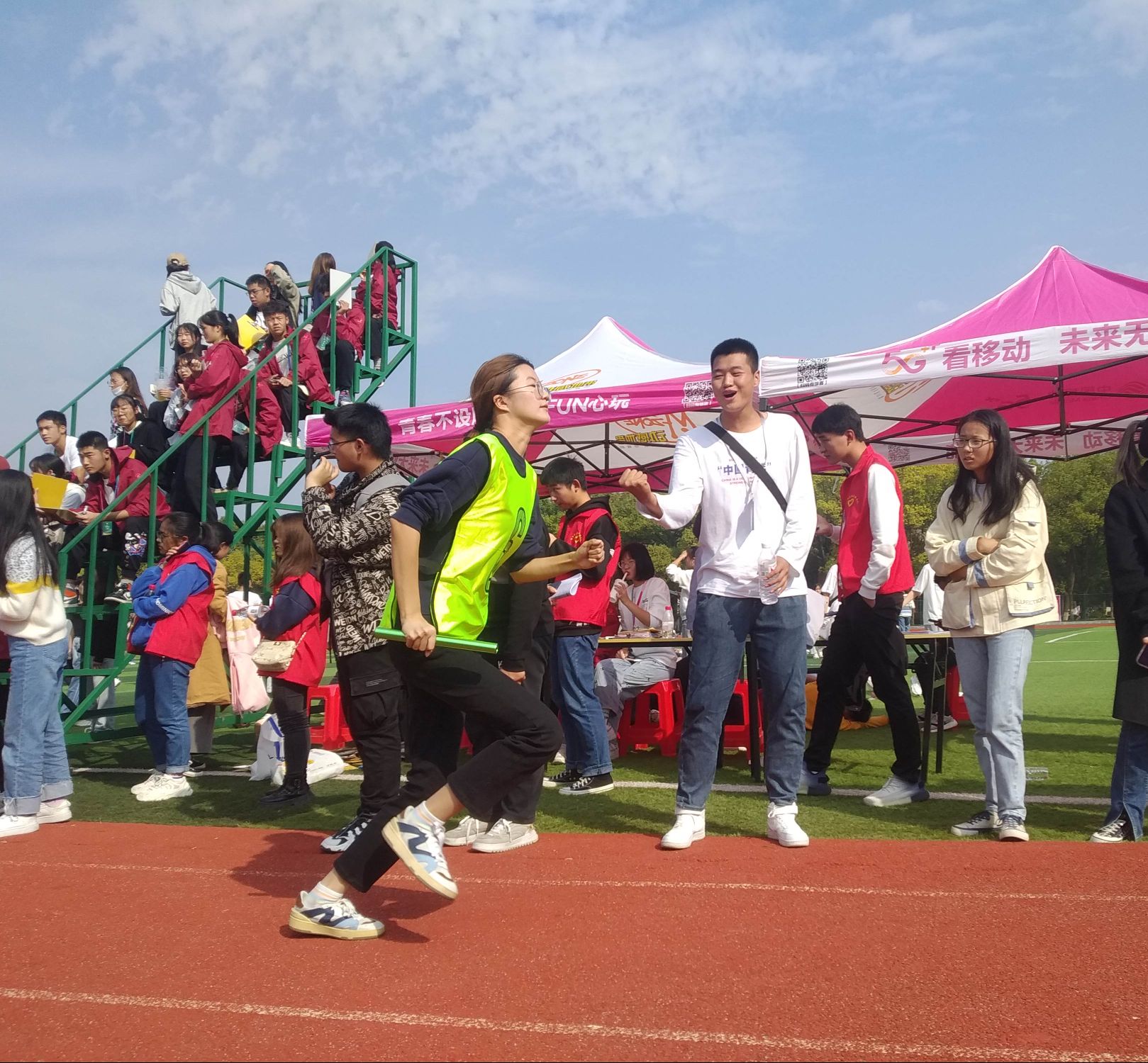 同时,在赛场上,运动员们在奋力拼搏。赛场下,由我系员工会成员组成的志愿者团队也时刻待命,为运动员们提供及时的服务与帮助,也为运动员们呐喊助威!