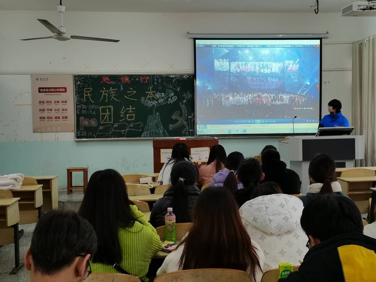 本网讯(见习记者 曾清清 贾思雪) 为促进中华儿女大团结,凝心聚力,充分统一战线的永恒主题。12月10日,经法系团总支组织各班开展“加强中华儿女大团结”主题团课活动。