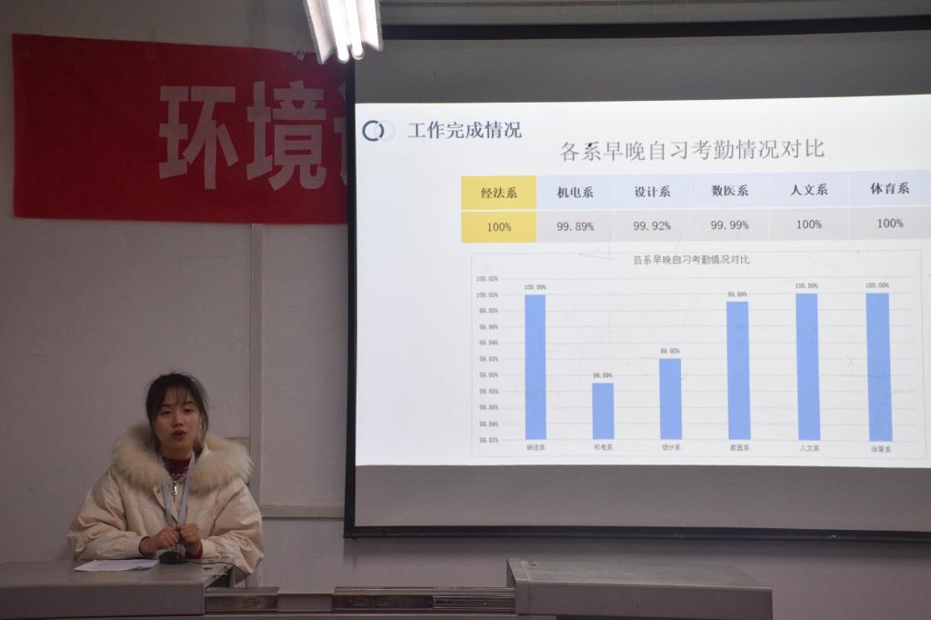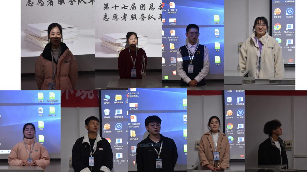 大会开始,由各部门代表--心委部符晶晶、网宣部张钧舒、综合部包东方、青联部邓雨婷、文体部林芝、学习部尹茜、新闻部帅贇、组织部胡祥、秘书处陈照依次上台代表部门做年终总结发言,各部门并通过视频的形式展示部门风采。