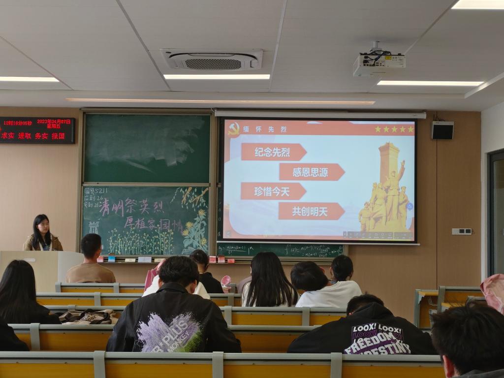 法学5223班主持人主要讲解了传统节日清明节和祭奠先烈等主要内容,以观看视频、小组交流讨论等方式了解革命先烈的事迹,学习了他们的革命精神,提高了同学们的爱国精神;国贸5211班主持人首先带领同学们了解了清明节的意义和由来,接着以提问的方式讲述革命先烈的事迹,积极鼓励同学们踊跃参与,发表自己的见解,让同学们学习烈士们顽强拼搏、自强不息的革命精神。其他班级也分别以不同方式讲解了缅怀革命先烈的意义,让同学们知道了为什么无数革命先烈为了党的奋斗目标和理想信念,抛头颅、洒热血,不怕困难、不怕牺牲、前仆后继。清明祭英烈,给广大青少年带来的不仅仅是内心和灵魂上的教育和洗礼,也引导了广大青少年向英烈学习,帮助他们树立正确的价值观和远大的理想信念,在他们的心中播洒下爱国爱党的种子。