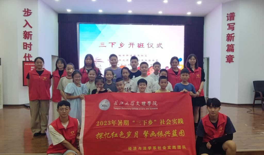 本网讯(见习记者:田琼钕)8月21日上午,经济与法学系志愿者服务队和荆州市四机社区、新风社区联合开展的“三下乡”暑期社会实践活动启动仪式召开。