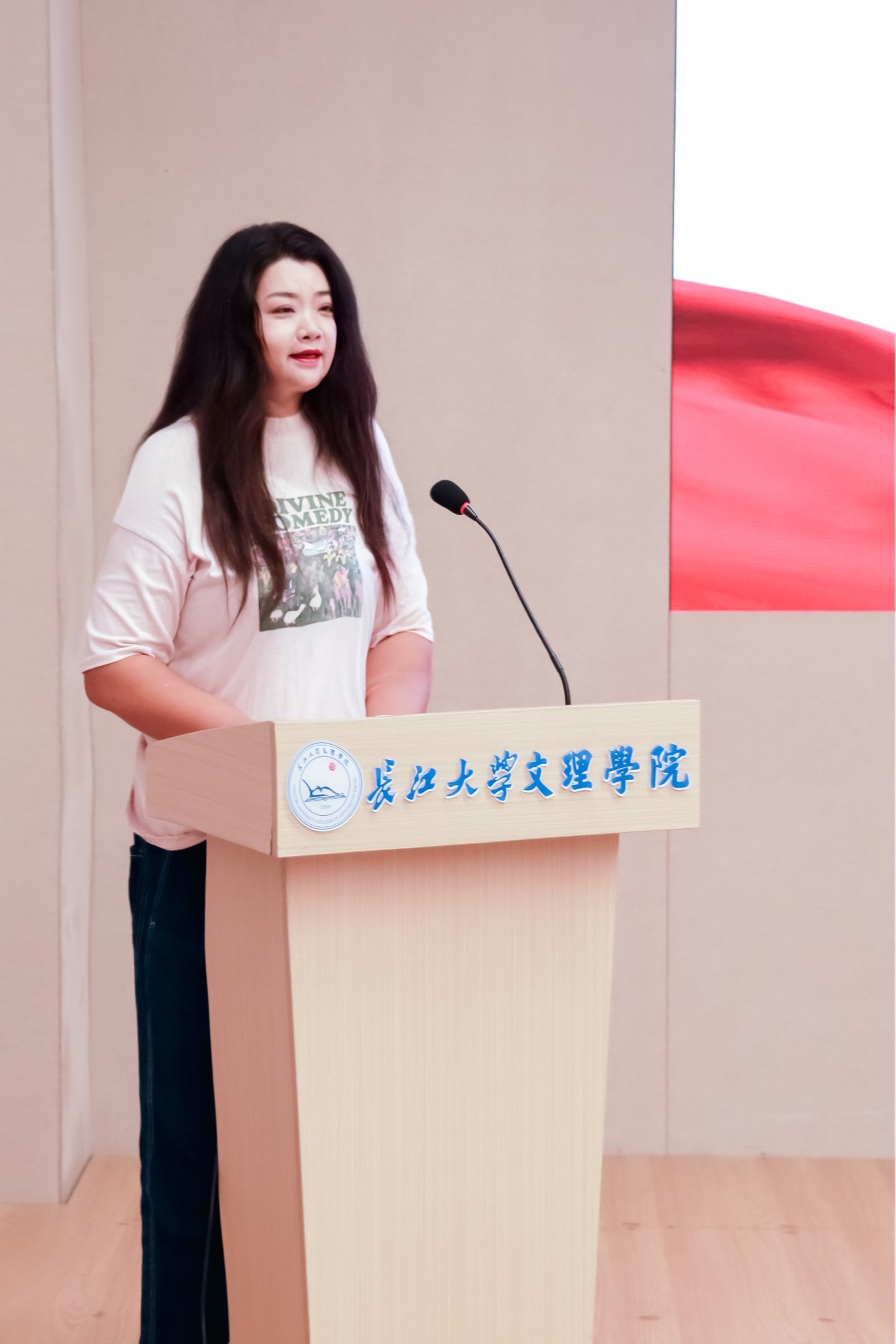 大会第五项,杨杉杉发表讲话,她在讲话中充分肯定了十九届团学组织员工干部为系部员工工作所付出的努力。向新任职的员工干部表示祝贺并提出四点要求:一是要坚定理想信念,加强理论学习,明确自身的职责使命;二是要服务同学成长,将同学需求作为工作的出发点和落脚点;三是要勇于担当作为,发挥模范带头作用;四是要加强团队建设,增强团队的凝聚力和战斗力。讲话结束后,杨杉杉宣布第二十届经济与法学系团总支员工会暨志愿者服务队正式成立。