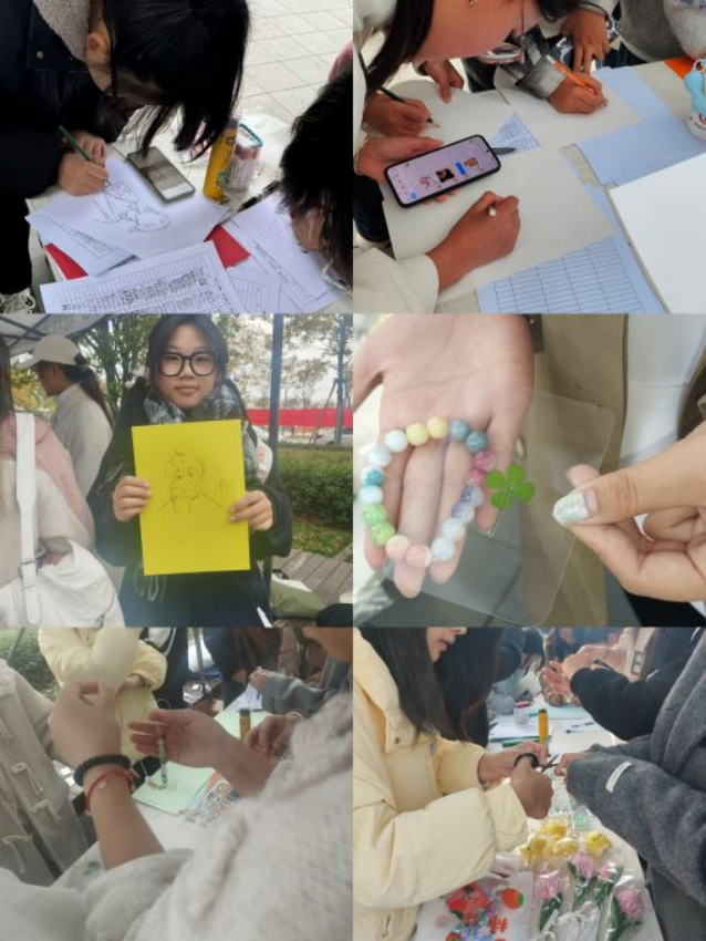 本次活动主要由“一起来画自画像”、“开心串一串”和“惊喜刮刮乐”组成。在“一起来画自画像”活动当中,参与人员根据自己的五官、发型、衣着等特征,描绘出一个独一无二的自己后,经确认后便可领取礼品一份。在绘画过程中,同学们以画布作为背景板,用丰富的色彩、巧妙的构图、不同的绘画风格将自己的形象和内心思考通过画笔表达出来,勾勒出了内心多元化的自我。该活动不仅增强了同学们的自我认同感,还可以帮助同学可以更好的了解自己。在“开心串一串”活动当中,工作人员会根据问题一步一步的引导参与者选择心仪的串珠和配饰,从而制作出一条精美的手串。在串珠过程中,同学们精心挑选着各式各样的珠子,在色彩的交织与变化中,释放着内心的压力与束缚。此外,在“惊喜刮刮乐”活动中还准备了10份特等奖,扭扭棒花束等。在工作人员的热情邀请之下,同学们积极参与,工作人员细心讲解活动内容及规则,鼓励同学们勇于挑战自己,收获自信。