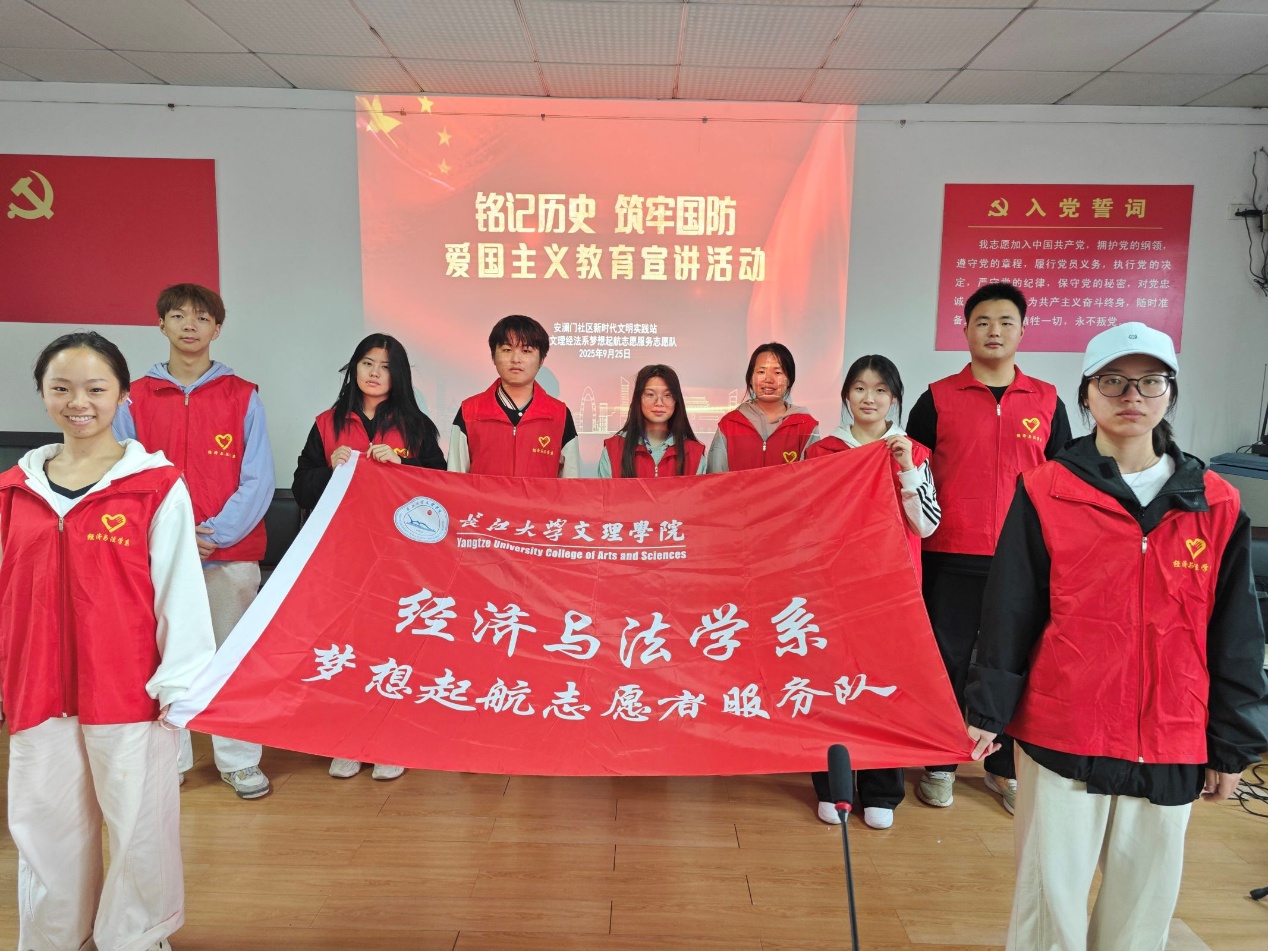9月25日下午,经济与法学系梦想起航志愿者服务队在荆州市荆州区安澜门社区开展了“铭记历史,筑牢国防”爱国主义宣讲志愿活动,旨在激发老员工爱国情怀,增强社会责任感,同时向社区居民普及国防知识、弘扬爱国主义精神。