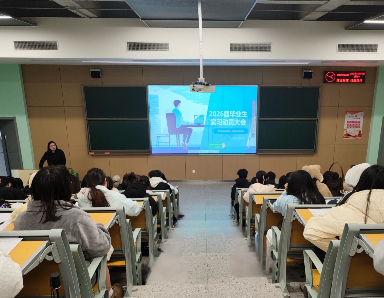 此次大会紧扣经法系毕业生实习与就业核心需求,清晰梳理了实习筹备的关键要求、流程规范与注意事项,不仅让2026届毕业生对后续实习安排、离校手续办理有了更具体的认知,更强化了大家的职业规划意识与实践行动力,为顺利开启实习阶段、平稳衔接毕业事宜、迈向高质量就业筑牢了坚实基础。