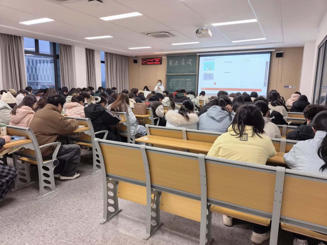 此次活动将宪法学习与日常学习生活有机融合,通过集体诵读,引导同学们在庄严氛围中深切体悟宪法权威,自觉树立“尊崇宪法、学习宪法、遵守宪法、维护宪法、运用宪法”的坚定意识。诵读声琅琅,不仅营造出专注严谨的学风,更让法治精神如春风化雨,浸润心田。