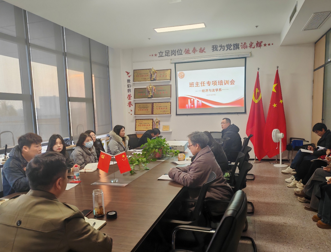 本网讯(见习记者:谭钱鑫)为进一步加强班主任队伍建设,提升育人工作实效,促进经验共享与业务互鉴,经济与法学系于12月18日下午在经法系会议室组织召开班主任工作经验分享交流会。会议特邀2024-2025学年校级优秀班主任获得者孙颖老师作专题分享。