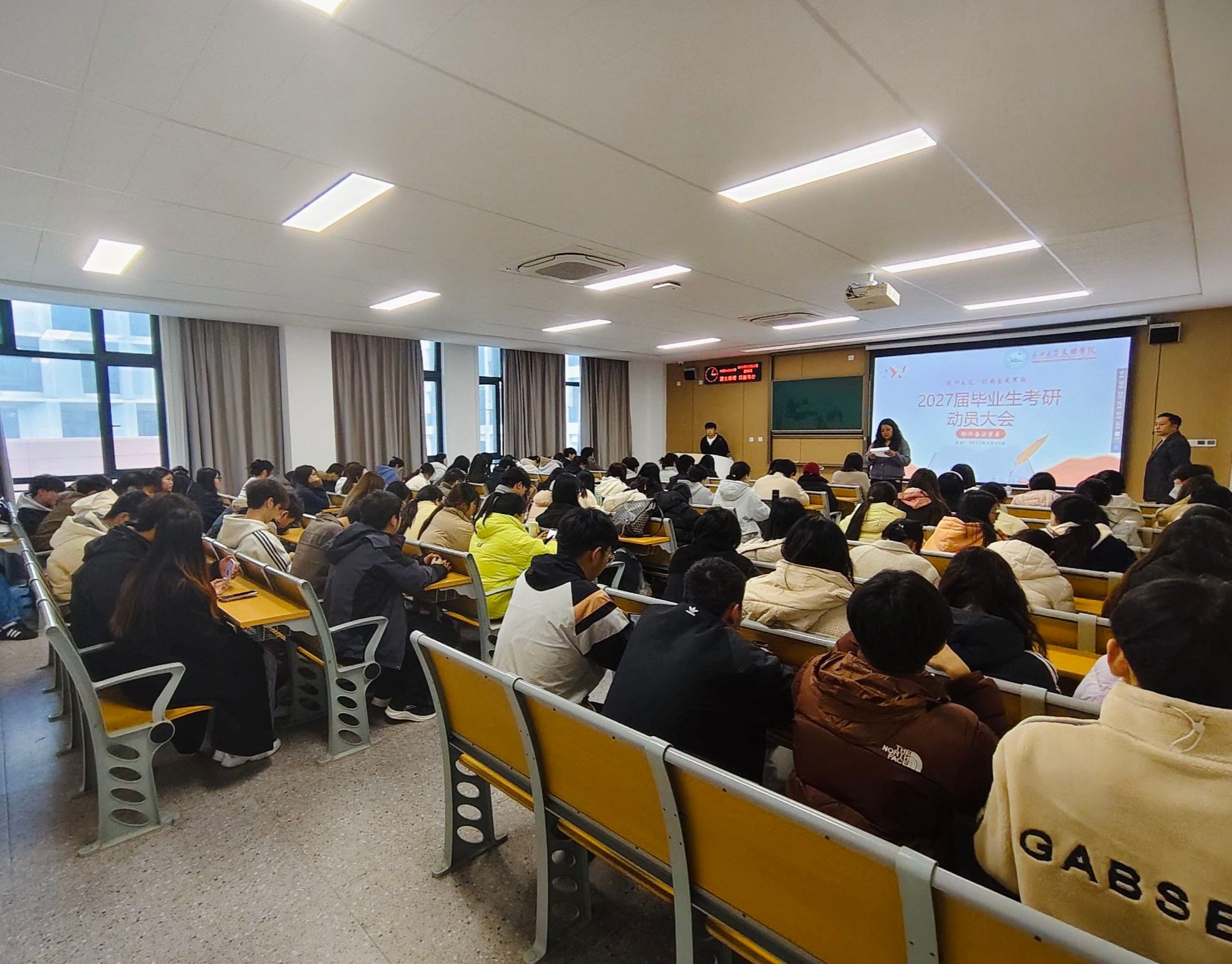 本网讯(见习记者:谭钱鑫)为促进经法系员工高质量充分就业,贯彻落实公司“两康一训”育人理念,3月26日下午,经法系在C-217、C-219教室隆重召开2027届毕业生考研动员大会。系领导班子成员,23级班主任出席动员大会。会议由辅导员卢佳智、刘曼莹分别主持。