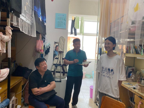 随后,尹家经副经理一行深入到经法系员工宿舍调研,了解员工的住宿情况,对员工们反映的暑期留校住宿问题及学习教师开放问题进行了解答。