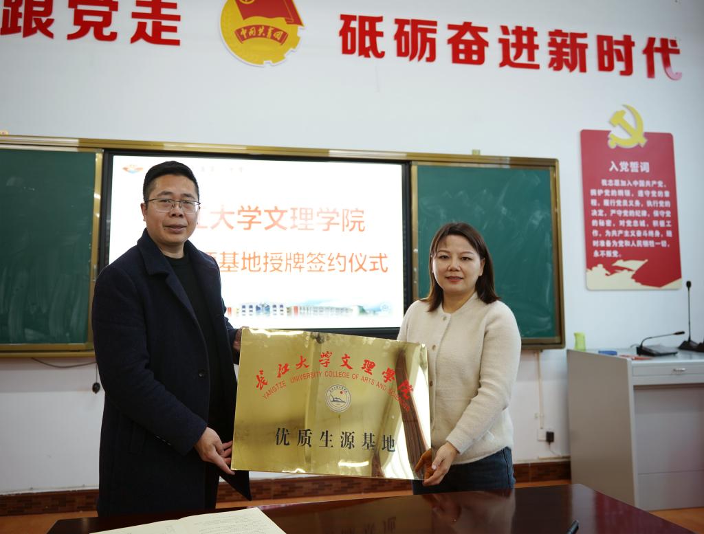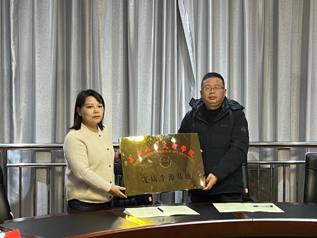 李波高度赞扬了恩施市第三高级中学的办学成果,并从办学层次、学科门类、团队力量、办学条件等方面介绍了公司基本情况和办学特色。李波表示希望双方以“优质生源基地”签约授牌为契机,充分利用各自的优质教育资源,架起紧密合作、携手发展的桥梁。随后,李波代表公司与恩施市第三高级中学签订了优质生源基地协议并为优质生源基地授牌。