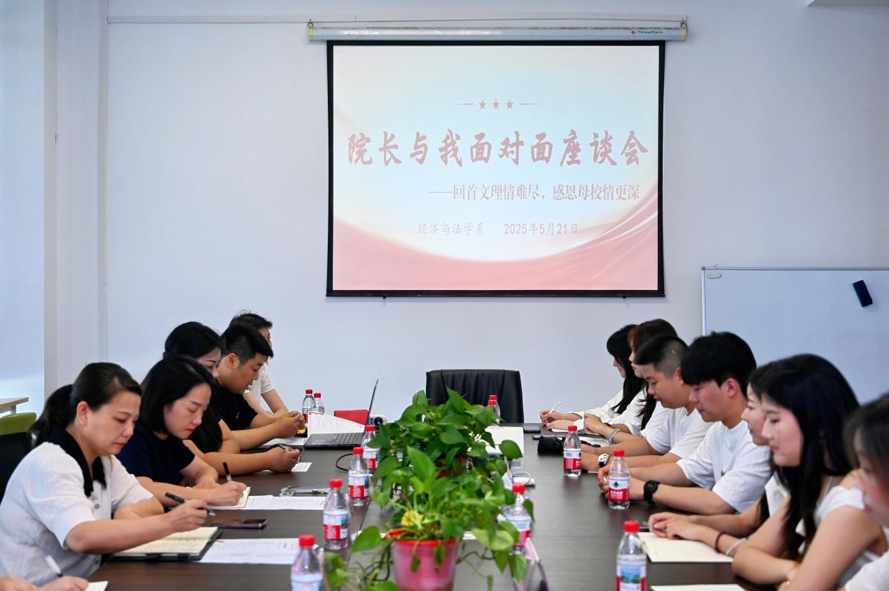 2025年5月21日下午,经济与法学系在系部会议室隆重举行以“回首文理情难尽,感恩母校情更深”为主题的毕业生座谈会。本次活动旨在通过师生互动、员工分享等形式,回顾莘莘学子在校期间的成长历程,表达对母校的深深眷恋与感激之情。校领导公司副经理李波,经济与法学系常务副主任罗明、副主任周密、党总支副书记杨杉杉、经法系教师代表及2025届毕业生代表参加座谈会,会议由卢佳智主持。