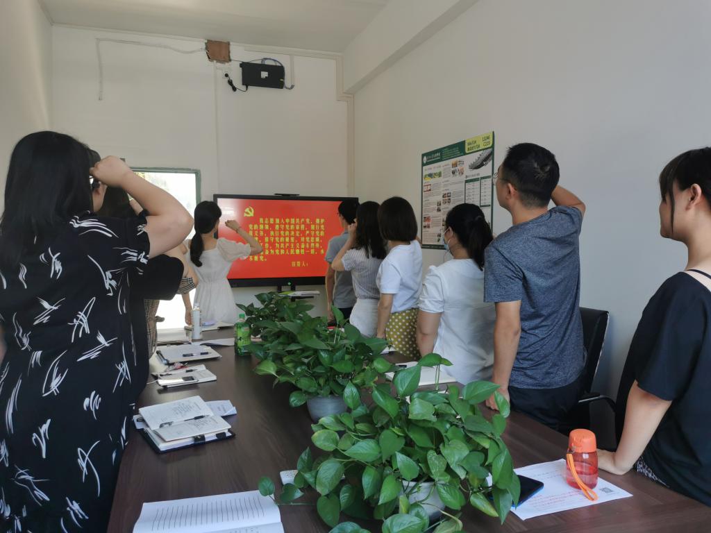 随后,全体党员教师和员工开展9月支部主题党日活动,重温入党誓词、诵读党章;集中学习《中国共产党党章》、《中国共产党简史》相关章节。