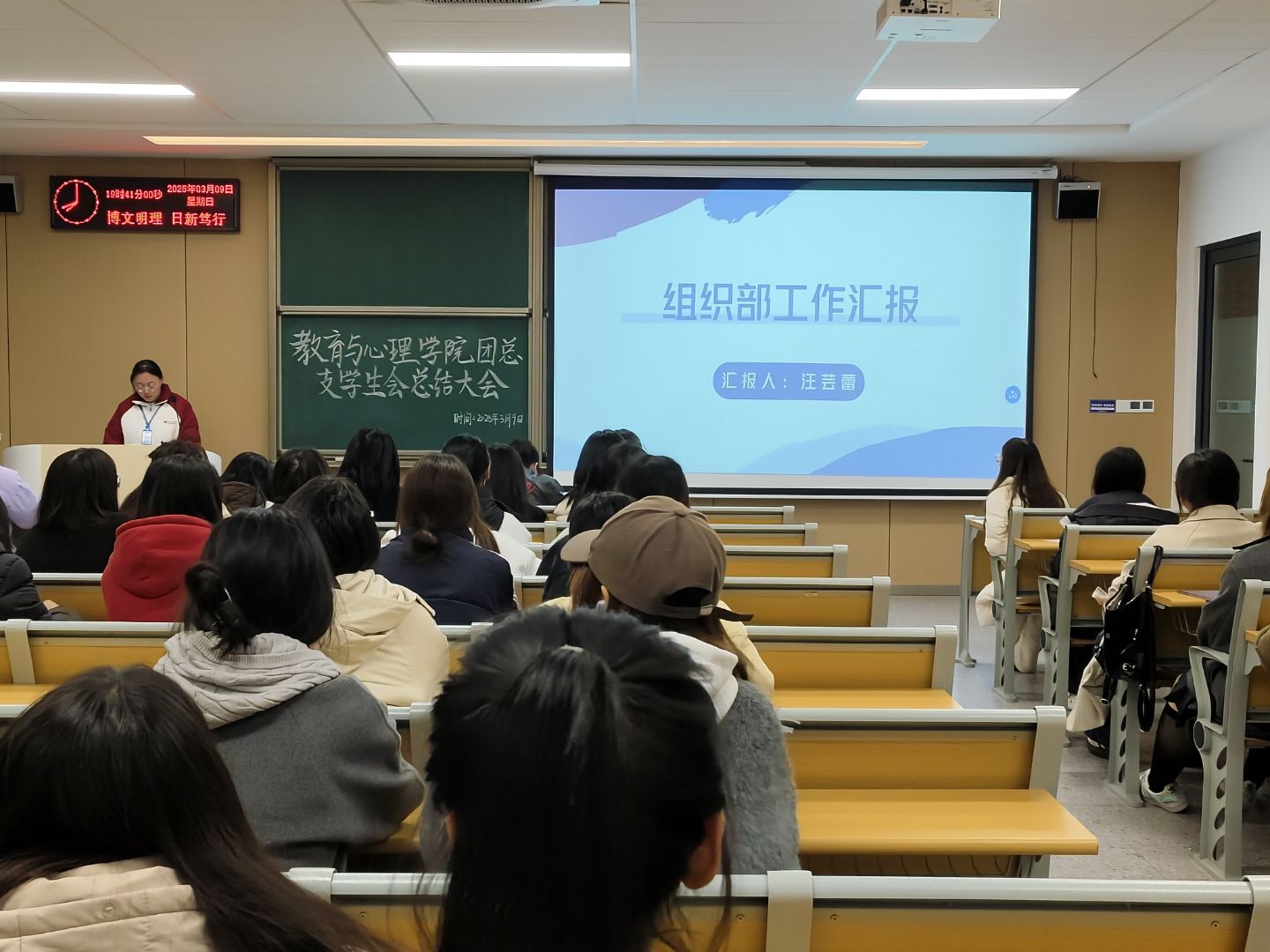 (通讯员 图文/刘俊妍)3月9日晚,教育与心理公司团总支员工会在A-502M教室召开了2024-2025学年第一学期工作总结大会。公司第五届团总支员工会全体成员参加了此次会议。