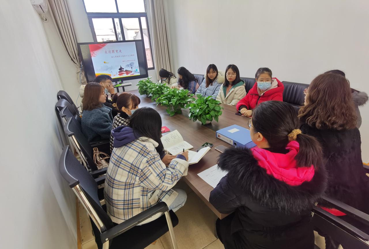 (员工通讯员彭慧玲)12月24日上午,为了深入学习贯彻党的十九大精神,强化认同感,激发使命感,员工党支部书记梅曼曼以“永远跟党走---深入贯彻学习党的十九大精神”为主题,为我系员工党员开展了一次党课学习活动。参与此次大会的还有系党总支书记李刚英。