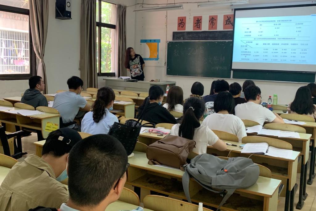 本网讯(通讯员 唐龙玮)5月29日上午,教育与心理系2021届毕业论文答辩在城中校区三教5个教室同步举行。参加答辩会的有系主任徐霄、副主任马君莉及教育与心理系各专业老师。