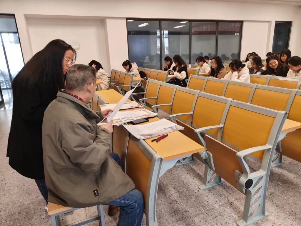 参训的员工已修完教师书法课程,他们对传统书法的笔法、字法有相应的了解。在首次培训中,朱道卫老师着重讲解了书法创作的两大问题,一是内容选择与作品纸张如何高度匹配;二是内容书写与题款形式如何高度协调。此外,朱老师还剖析了优秀传统文化、红色革命文化与社会主义先进文化等内容与书法形式的关系问题,并因材施教,为每一组同学分配了书写内容,提供了资料查阅的渠道。