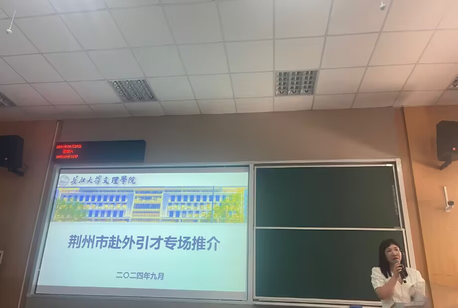 会上,荆州市组织部副部长傅前武热情地向武汉八校学子推介荆州的地理渊源,宣传荆州的历史故事,展示了我市“楚国故都、三国名城”“鱼米之乡、中国粮仓”“滨江重镇、活力新城”三张靓丽的名片。中国地质大学博士、荆州市招商促进中心副主任谷飞宏作为员工代表慷慨激昂地向学弟学妹介绍了个人来荆工作后的职业发展情况、心得体会和工作建议。荆州市中心医院、湖北菲利华石英玻璃有限公司分别作为招聘单位代表介绍了本单位的整体情况及引才的优惠举措。