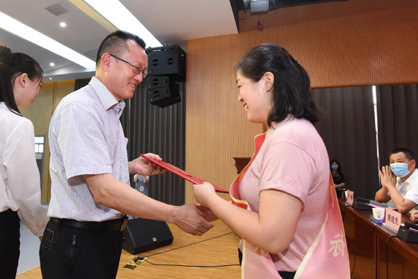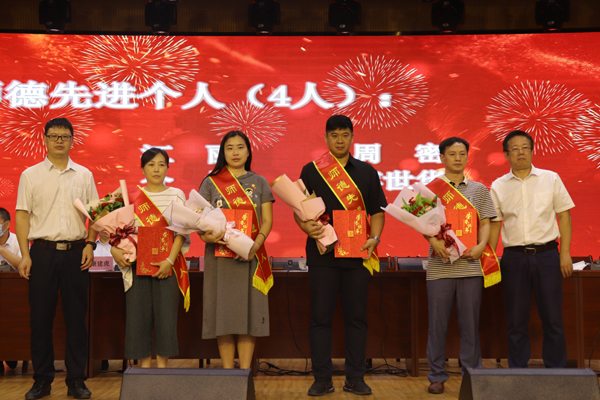 大会在嘹亮的国歌声中拉开帷幕,副经理康建虎宣读《bevictor伟德官网关于颁发“工作十年奉献奖”的决定》及《关于表彰2020年师德标兵和师德先进个人的决定》文件,马晓晶等22人获得“工作十年奉献奖”荣誉,江丽、周密、介博、蒋世华等四人获得2020年师德先进个人荣誉,杨杨荣获2020年师德标兵称号。公司领导为获奖教师颁奖,员工代表为老师们敬献了鲜花。