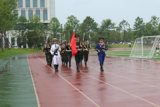 在细雨中,国旗护卫队昂首阔步,动作整齐划一,随着国歌的奏起,五星红旗缓缓上升,迎风飘扬。接着,员工代表范怡然、朱颖在国旗下朗诵《百年芳华》,其中提到的“红船精神〞和“长征精神”贯穿了中国共产党百年奋斗历程,也是我们党的强大精神力量和宝贵精神财富。当代青年不仅要勇于担当使命,更要彰显为国为民的情怀,要敢于无畏前行,善于开拓创新,以科技报国的责任和担当各展所长,在国家发展历程中实现人生理想。