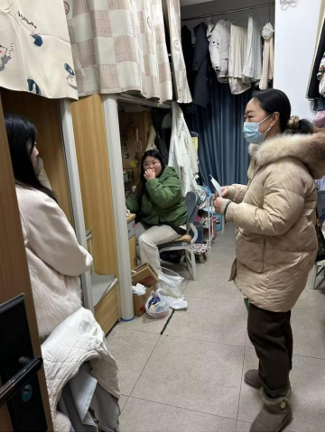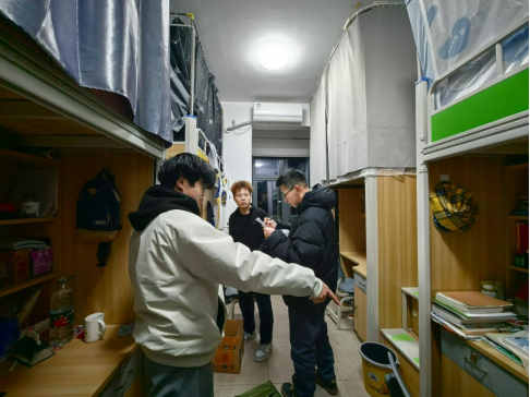 会后进行宿舍安全大检查活动。班主任及辅导员老师们围绕安全隐患、卫生状况、思想动态几个方面对宿舍进行全面检查,同时了解同学们新学期的学习计划,提醒同学们要时刻注意人身安全,合理安排作息时间。